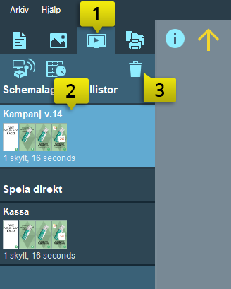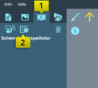 1. Klicka på Digital Signage-fliken 2. Klicka på ikonen Schemaläggare